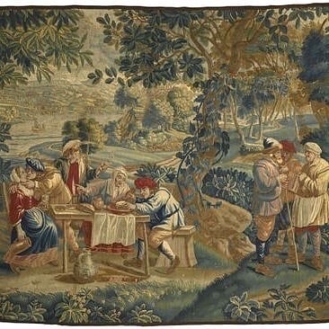 Tapíz sobre cartón de Teniers, firmado, taller de Guillaume Wernier, circa 1720. Lille, Francia. Medidas 2,05×2,25